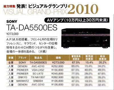 というわけで、TA-DA5500ESは、HiVi誌に並んでAVレビュー誌でも好成績となりました。