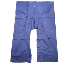 ズボンにはヒモがついていますので、これを後ろになるように履いて、前に回して蝶々結びします。ズボンはダブダブなので、余った生地は腹の前で折り畳んで、ヒモはその上から縛ります。最後にTシャツを着て準備完了。
