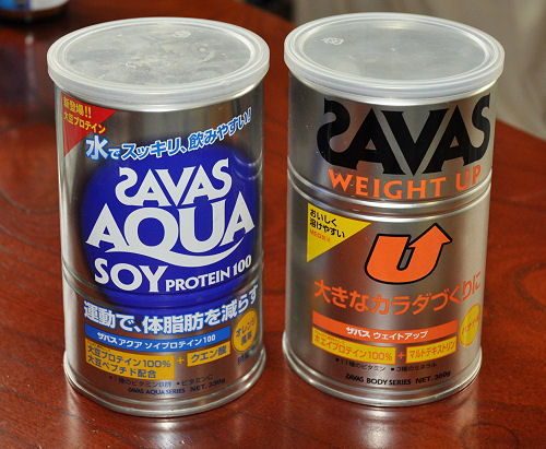 左は大豆から作ったソイプロティン。あまり体重が増えないタイプです。一カ月ほどこれを飲みましたが調子がいい。そこで最近右のホエイプロティンを追加しました。ホエイを運動直後にのみ、ソイを寝る前に飲んでいます。