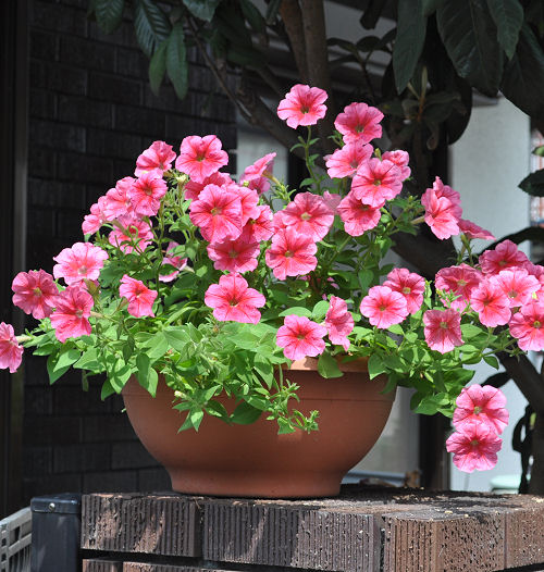 この画像は前日のものですが、今朝は花は全部溶けて垂れていました。悲惨なので画像はナシ。もっとも、サフィニアはどんどん咲く花なので特に問題ないですが。