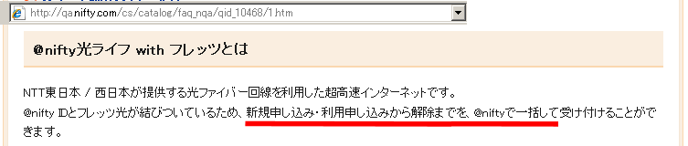 この「光ライフ」という契約は、@niftyのプロバイダ契約と、NTTの回線契約の別々の契約をセットにしたものだそうです。料金が安い代わりに二年間の間に解約すると違約金がかかる形態が選択できます。