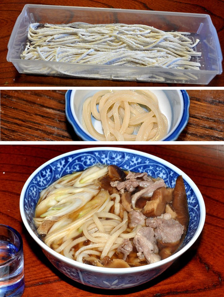 長いあいだわずかな記憶と手さぐりで打っていましたが、最近になって母の末の弟 (つまりおじさん) がうどんを打つ係だったことがわかりました。おかげでおじが記憶しているかぎりの詳細を聞くことができ、ほぼ全容がわかりました。