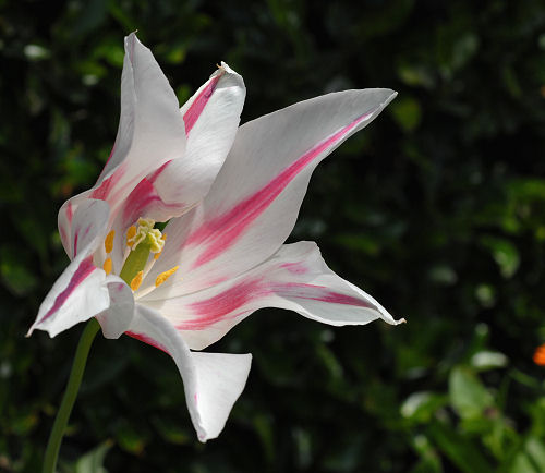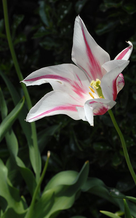 さて、画像ですが、今年の最後を飾り開花した「ユリ咲き」チューリップです。これ、買うとかなり高いんですよ。去年二球だけ買いましたが、あまり強い品種ではなく一球がだめになり、一球が越年。
