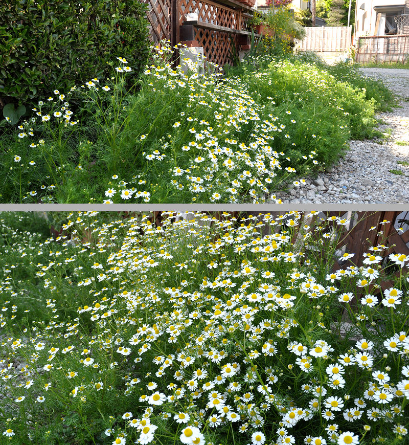 カモミールは摘むほどはなかったのですが、今年は摘み取って乾燥カモミールにしておこうと思います。そうそう、今度の土日はカモミール風呂だな。